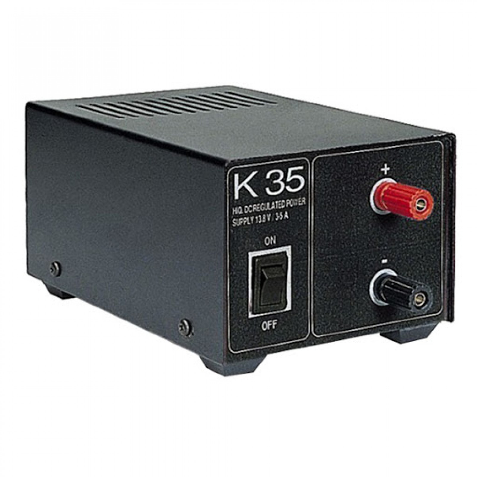 Alan K 35 Характеристики: Входное напряжение: 230В перем.тока - 50Гц Выходное напряжение: 13,8 В пост. тока Номинальный ток на выходе: 1А Прерывистый ток: 2А Пиковый ток: 3А Предохранитель: 0.5А Габариты (ВхШхГ)в мм: 78х107х173 Вес: 1.55 кг